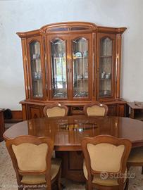 tavolo con 6 sedie imbottite + vetrina, ottime condizioni.
