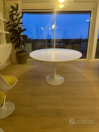 Tavolo ovale 198x121 bianco laccato opaco con 6 sedie con imbottitura verde mela in perfette condizioni. Copia del celebre modello Saarinen della Knoll
