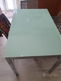 Vendo tavolo con base in vetro e gambe in acciaio 70x110 con allunga da 50 cm