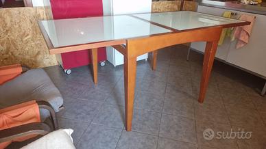 Tavolo allungabile. Piano in vetro temperato. Buone condizioni(piccoli graffi alle gambe) Misure 90x 90 e 180 xm90 da aperto. Ottima fattura. Legno pieno. No ikea Già smontato