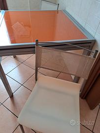 Tavolo in vetro temperato arancio mis.90x90x75-allungabile Domino +n.2 sedie Calligaris
