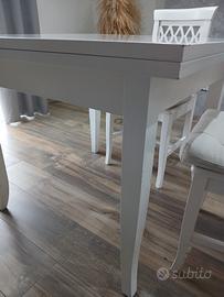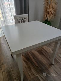 tavolo 90x90. aperto 90x180 legno bianco +4 sedie