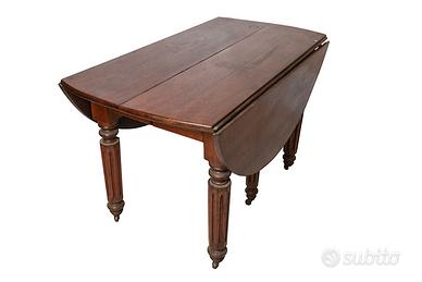 Tavolo inglese a bandelle con due prolunghe del tardo periodo Vittoriano. Si allunga a strappo. Presenti evidenti segni del tempo trascorso ma il tavolo ha solo bisogno di un piccolo restauro conservativo.
