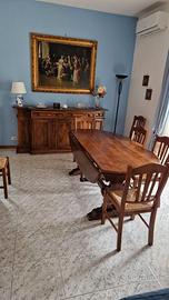Sia il tavolo che le sedie presentano presenza di tarli. È quindi necessario un trattamento antitarlo e, per chi desidera un risultato ottimale, un eventuale restauro conservativo. Perfetto per chi cerca un pezzo autentico da recuperare.