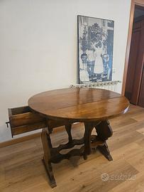 Altezza 79.7 cm Diametro 99 cm Da chiuso: 99x 47.5 cm Presenza di cassetto profondo 48.5 cm Buone condizioni, qualche graffio per usura e punto con distacco legno (vedere foto 4). Ritiro a carico dell'acquirente (zona Roma Sud)