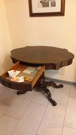 Perfettamente restaurato, come nuovo vendo Tavolo a chitarra con cassetto lungo alto 90 cm, lungo 105 cm, e profondo 68 cm.