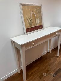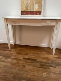 Tavolo a consolke bianco con due cassettini in legno verniciato e restaurato bianco Misure L122 x P36 x H83