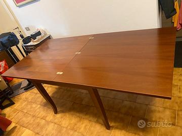 Vendo tavolo a libro in legno massiccio, non il solito laminato. Molto robusto, con qualche segno dovuto all'uso e al tempo, ma in ottime condizioni. Misure: chiuso 100x100 cm. aperti 100x200 cm. altezza da terra del piano 75,5 cm.