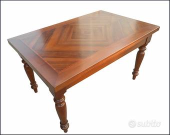 Questo tavolo in legno massiccio è un vero capolavoro di artigianato. La sua struttura robusta con gambe tornite e il piano con un'elaborata venatura a spina di pesce gli conferiscono un aspetto elegante e raffinato. Ideale per ambienti classici, questo tavolo diventerà il pezzo forte del tuo arredamento grazie alla sua bellezza senza tempo. Le dimensioni generose lo rendono perfetto per sale da pranzo o studi di rappresentanza. Un investimento duraturo che valorizzerà qualsiasi spazio con il suo fascino intramontabile.