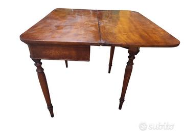 Singolare e particolare tavolo a libro scrittoio console Luigi Filippo Cappuccino, in noce massello con radica e piuma di noce, risalente alla seconda metà del XIX secolo.