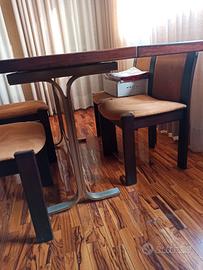 Tavolo vintage "a libro" con ripiano in legno scuro e base in metallo. Disponibili anche le sedie descritte in un altro annuncio sul mio profilo. Il prezzo dell' annuncio si riferisce solo al tavolo, per il set completo sarà necessario aggiungere un supplemento.