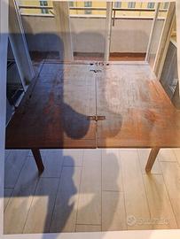 ANTICO TAVOLO PRANZO ALLUNGABILE A LIBRO IN LEGNO Misure con tavolo chiuso: 1,15 x 0,57 - APERTO 1,15 X 1,15, altezza da terra sino alla parte che congiunge le gambe del tavolo 0,58 per calcolare se le Vs. sedie entrano. PREFERIBILE LA CONSEGNA A MANO O TRASPORTO ORGANIZZATO DALL'ACQUIRENTE