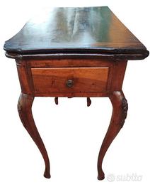 Singolare e particolare tavolo a libro scrittoio Luigi XV in noce massello, risalente alla seconda metà del XVIII secolo, espressione della raffinata produzione emiliana del periodo.