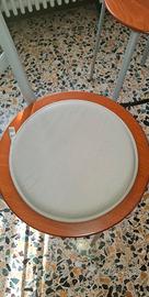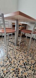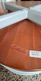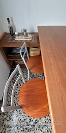 Tavolo a penisola in legno, con gamba ad altezza regolabile e mensola da staffare a muro completa di 5 sgabelli e 2 sedie coordinate comprese di cuscini. Marca Calligaris