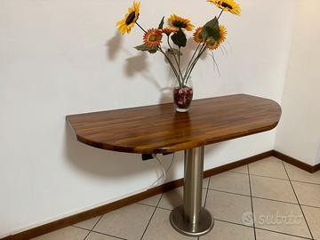 Tavolo penisola in noce con gamba unica in acciaio.