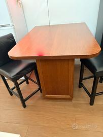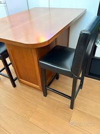 Bellissimo mobile artigianale fatto a mano in rovere antico piu due sedie bar in legno e similpelle. 125 x 92 x 93. Con scomparti interni per stoviglie e pentole. Non spedisco. Ritiro a mano in zona famagosta a milano. Super bello