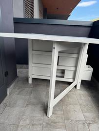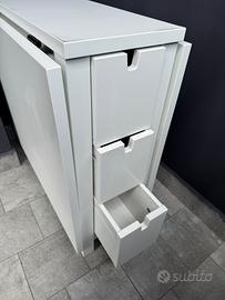 Tavolo a ribalta colore bianco mai usato piccole imperfezioni con cassetti in entrami i lati in legno