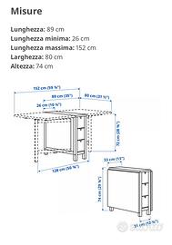 Tavolo a ribalta NORDEN Ikea Bianco, 26/89/152 x 80 cm Il prodotto presenta dei difetti solo estetici, non strutturali
