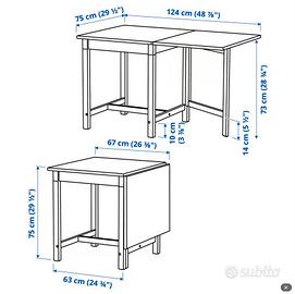 Vendo tavolo IKEA PINNTORP a ribalta pieghevole salvaspazio, ideale per cucina, soggiorno, monolocale, appartamento piccolo. Perfetto come tavolo da pranzo, tavolo cucina, tavolo compatto, tavolo richiudibile. Grazie alle ribalte si usa: chiuso → occupa poco spazio aperto → fino a 4 persone 🪵 Materiale: legno massiccio resistente 📏 Dimensioni: 67 cm chiuso / 124 cm aperto – larghezza 75 cm ✅ Caratteristiche: tavolo salvaspazio tavolo pieghevole / ribaltabile ideale per piccoli spazi, bilocale, monolocale stile moderno, nordico, perfetto per casa, ufficio, studio, cucina