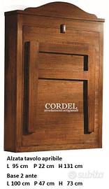una alzata con tavolo apribile con le seguenti misure: L 95 cm H 131 cm P 22 cm chiuso