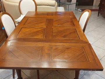 Vendo, per motivi di spazio, bellissimo tavolo quadrato a tiro in noce dell'800 provenienza Modena-Bologna. Tutto in noce, filettato con due prolunghe anch'esse filettate. Piedi torniti, ben conservato. Misure 1metro X 1 metro più due prolunghe di 45 cm l'una. Totale aperto 1,90 Per accordi 3477110782 Daniele