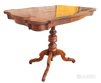 Raro ed importante tavolino a vela mistilineo intarsiato Rolo, con gambo a balaustro e piedi sagomati a ricciolo rovesciato, detto “Prussiana” per il particolare apprezzamento di cui godevano questi mobili sul mercato tedesco.