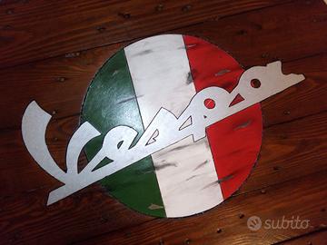 Tavolo tondo medie dimensioni girevole in legno da bobina realizzato in stile vintage , diametro 80 cm. con logo Abarth o Vespa su base cromata regolabile in altezza e ripiano porta oggetti, porta bibite. Arredamento unico per arredare un ambiente!Il prezzo è riferito a singolo pezzo ed è intrattabile non si spedisce solo ritiro e consegna a mano!Pezzo unico ed introvabile realizzato a mano!