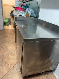 Tavolo acciaio con sportelli scorrevoli ripiano interno