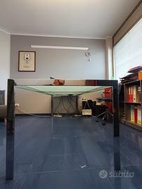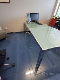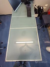 Tavolo utilizzabile come tavolo da pranzo o scrivania da ufficio o tavolo riunioni. Struttura in acciaio inox e piano di cristallo satinato spessore 10 mm. Misure cm 222x 87xh72.5 circa