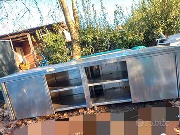 Tavolo professionale in acciaio inox con ripiano centrale e porte scorrevole