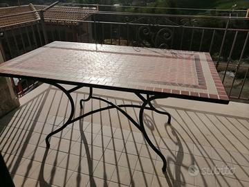 Tavolo 160x90, in perfette condizioni non presenta graffi. I piedi sono in ferro e la base in ceramica effetto mosaico.