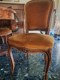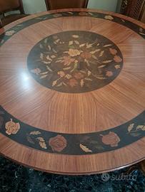 tavolo rotondo con 6 sedie in velluto. provenienza artigianato di Saluzzo prezzo trattabile, importante è essere atrrezzati per portarlo via.