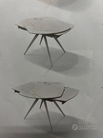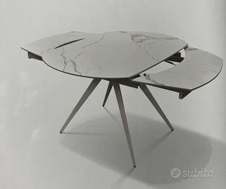 TAVOLO ALLUNGABILE CON PIANO IN CERAMICA SP. 10 MM, GAMBE IN METALLO COLORE BIANCO .