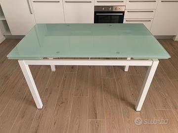 Tavolo allungabile 140x80 in vetro temperato, struttura bianca con 2 allunghe in vetro auto estendibili