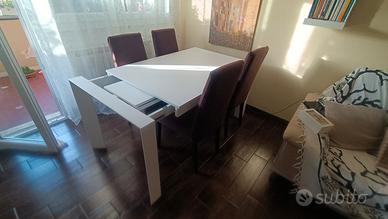 Tavolo bianco salone allungabile 140x90 arriva a 220 cm 4 sedie Nancy marroni con fodera usato