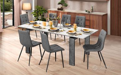 Tavolo allungabile stucco piombo, stucco bianco cm 170 x 90 x 75 Adatto a 6/10 persone, Allungabile fino a 220 cm compreso di 6 sedie imbottite, la madia sarebbe a parte se eventualmente interessati a 100 euro, magari posso scontare ancora se presi insieme e magai anche con tutto il soggiorno