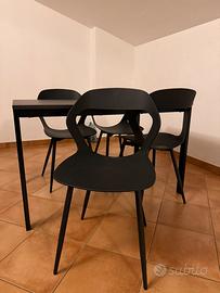 Tavolo allungabile 120/180x75 cm color legno scuro e struttura alluminio nera. Sedie in plastica nere