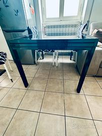 Vendo tavolo da pranzo allungabile totalmente nero con basi in vetro nero, robusto e molto bello