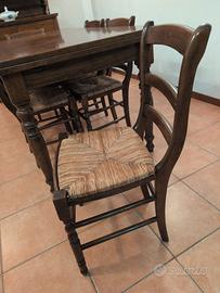 • 6 sedie con schienale a doghe e seduta in paglia intrecciata