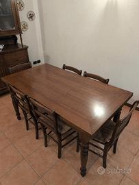Vendesi elegante set completo composto da tavolo rettangolare ALLUNGABILE e 6 sedie coordinate, perfetto per arredare la tua sala da pranzo con stile e carattere!