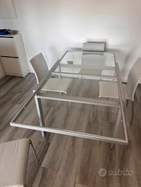 Tavolo allungabile 90x90 in cristallo + sedie