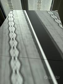 Vendo elegante tavolo allungabile di colore bianco, dimensioni 90x90 cm da chiuso, estendibile fino a ben 3,5 metri, ideale per ospitare comodamente numerosi commensali. Struttura solida e robusta, dotato di doghe di allungo e pratico sistema porta-doghe integrato, per una gestione semplice e ordinata delle estensioni.