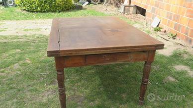 Vecchio tavolo apribile da cucina in rovere con due cassetti. Il piano misura 149 x 106 x 80H (allunga da 67cm). Da restaurare ma in buone condizioni. SPEDISCO