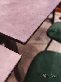 Vendo tavolo da pranzo allungabile moderno, piano in vetro rivestito effetto cemento.