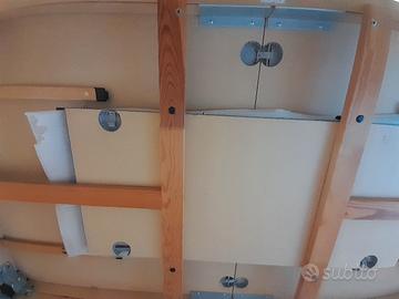 Tavolo chiuso 95x175, allungabile a 218 o 260 cm. Panca coordinata 36x158 cm. Il tavolo nella parte superiore è in perfette condizioni, la base delle gambe è un po sciupata. Smontaggio e trasporto a carico dell'acquirente.