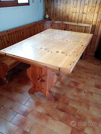 TAVOLO E PANCA ANGOLARE IN PINO DI SVEZIA VENDIBILI ANCHE SINGOLARMENTE. TAVOLO 1500X1000 ALLUNGATO MISURA 3000X1000. PANCA 2100X1350