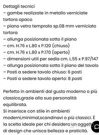 Come nuovo vendo bel tavolo allungabile con meccanismo interno , in metallo con piano in vetro temperato opaco, modello Blade B . A soli 350 €, vera occasione. Le misure da chiuso 120 lung.x80 larg. X 76 h. Da aperto 170 cm in lungh. Va bene da 4 a 8 persone per pranzare. Ritiro sul posto.