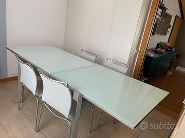 Vendo per rinnovo arredo tavolo da pranzo Calligaris completo di 4 sedie. Il tavolo si estende grazie ad un meccanismo interno fino ad una lunghezza di 2m. Piccoli segni di usura come in foto. Ritiro a Treviso (zona Monigo).