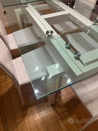 Vendo, come da foto, ad € 600,00, tavolo allungabile, da 6 ad 8 posti, con struttura in legno laccato color bianco e ripiano in vetro.