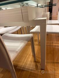 Nel prezzo sono comprese n. 6 sedie in pelle bianca, come da foto, con alcuni difetti evidenziati.